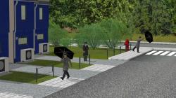 Die Standmodelle zeigen unterschiedliche Szenen. Wenn der Wind mal richtig bläst, dann kann der Schirm schon mal fast davon fliegen. Kurz vor dem Regen wird noch schnell der Regenschirm aufgespannt bevor man nass wird. Mit unterschiedlichsten Standmodellen kann man eine Szene schnell beleben.